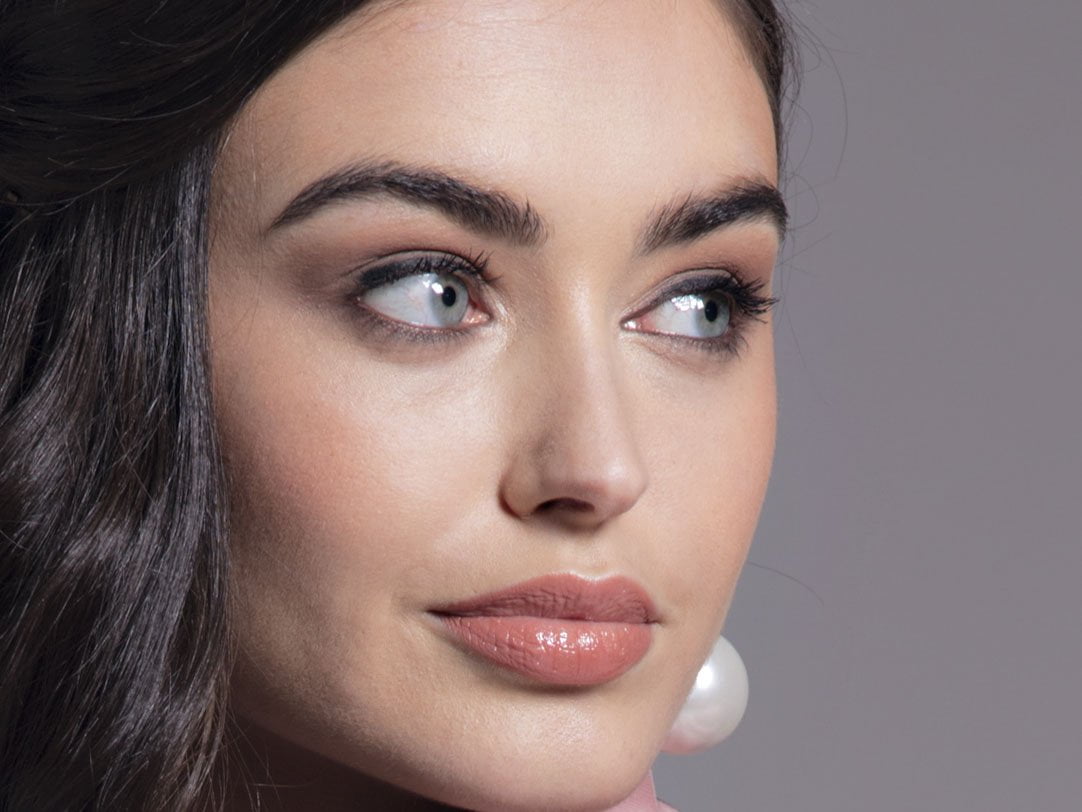 Retaining her natural pale complexion, we airbrushed her skin, we emphasised details in lips, brows & eyes
